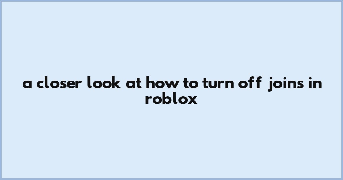 A Closer Look At How To Turn Off Joins In Roblox