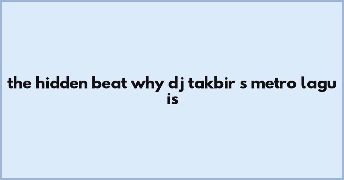 The Hidden Beat: Why DJ Takbir’s 'Metro Lagu' Is