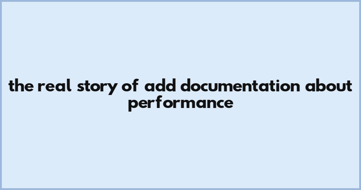 The Real Story Of Add Documentation About Performance