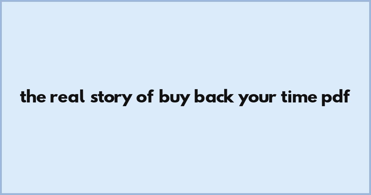 The Real Story Of Buy Back Your Time Pdf